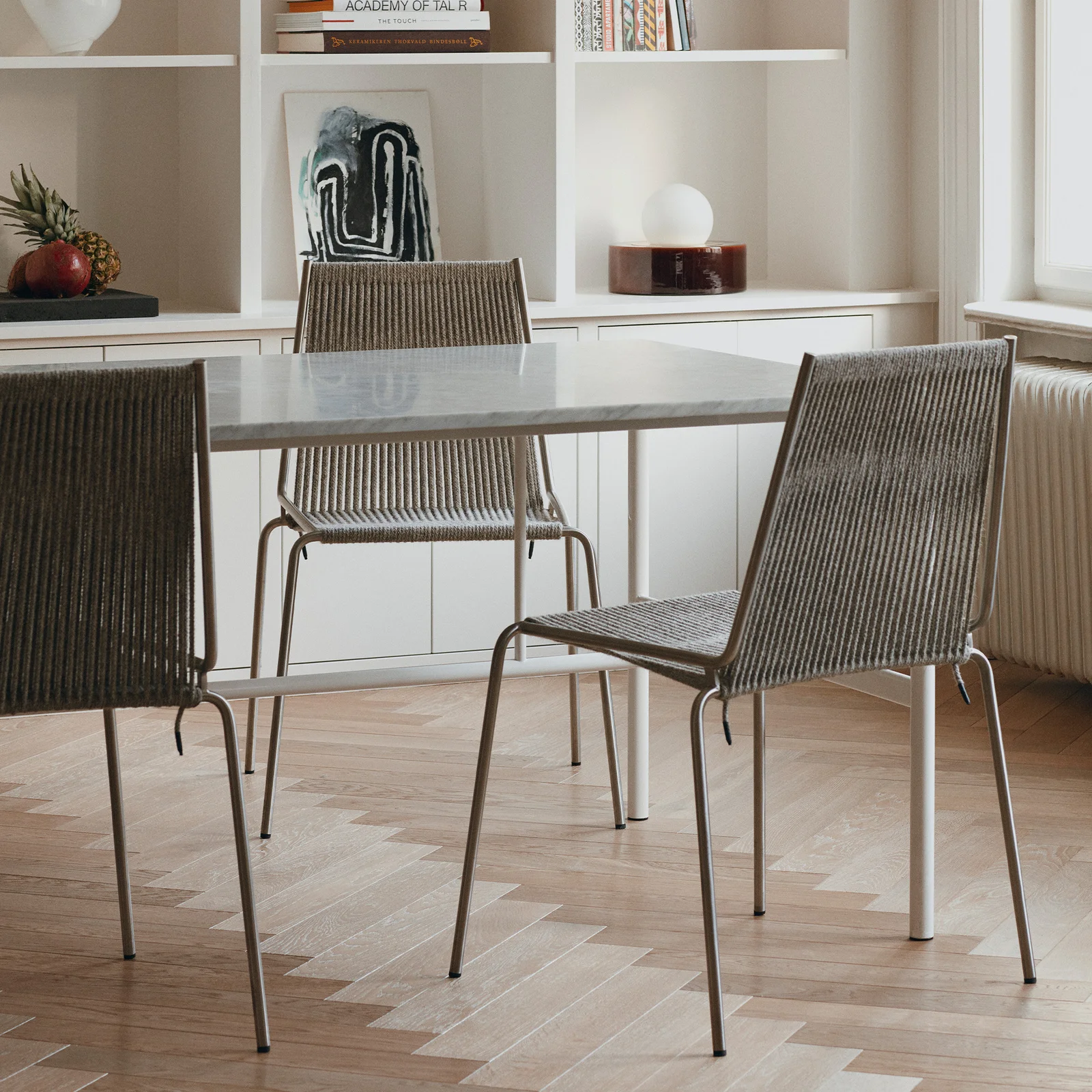 Við samanspælinum millum kaldan styrkin í stálinum og tað livandi handverkið í flættinum, er Noel Chair eitt møbel, ið ger seg galdandi – bæði sum sniðobjekt og sum ein komfortabelur partur av gerandisdegnum.