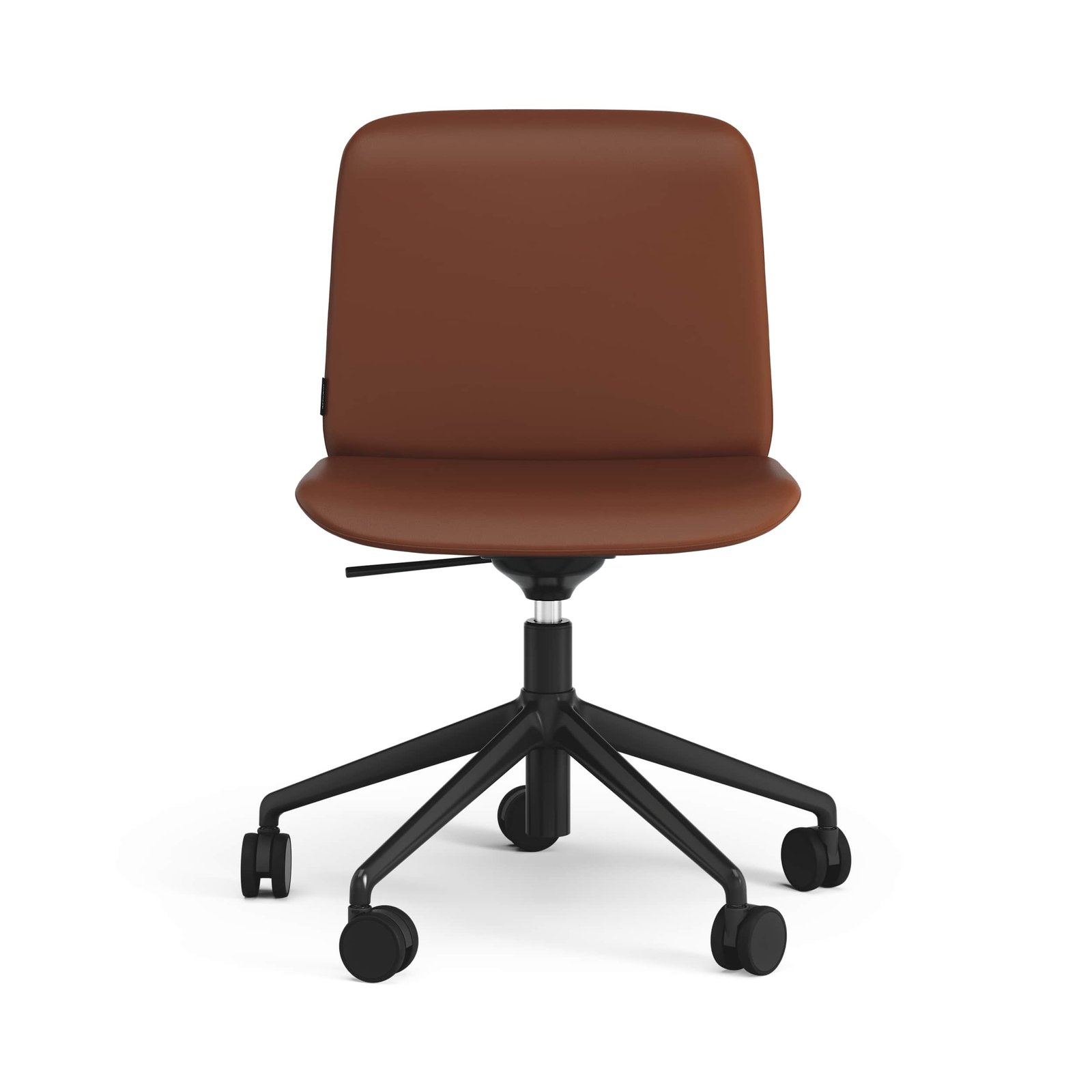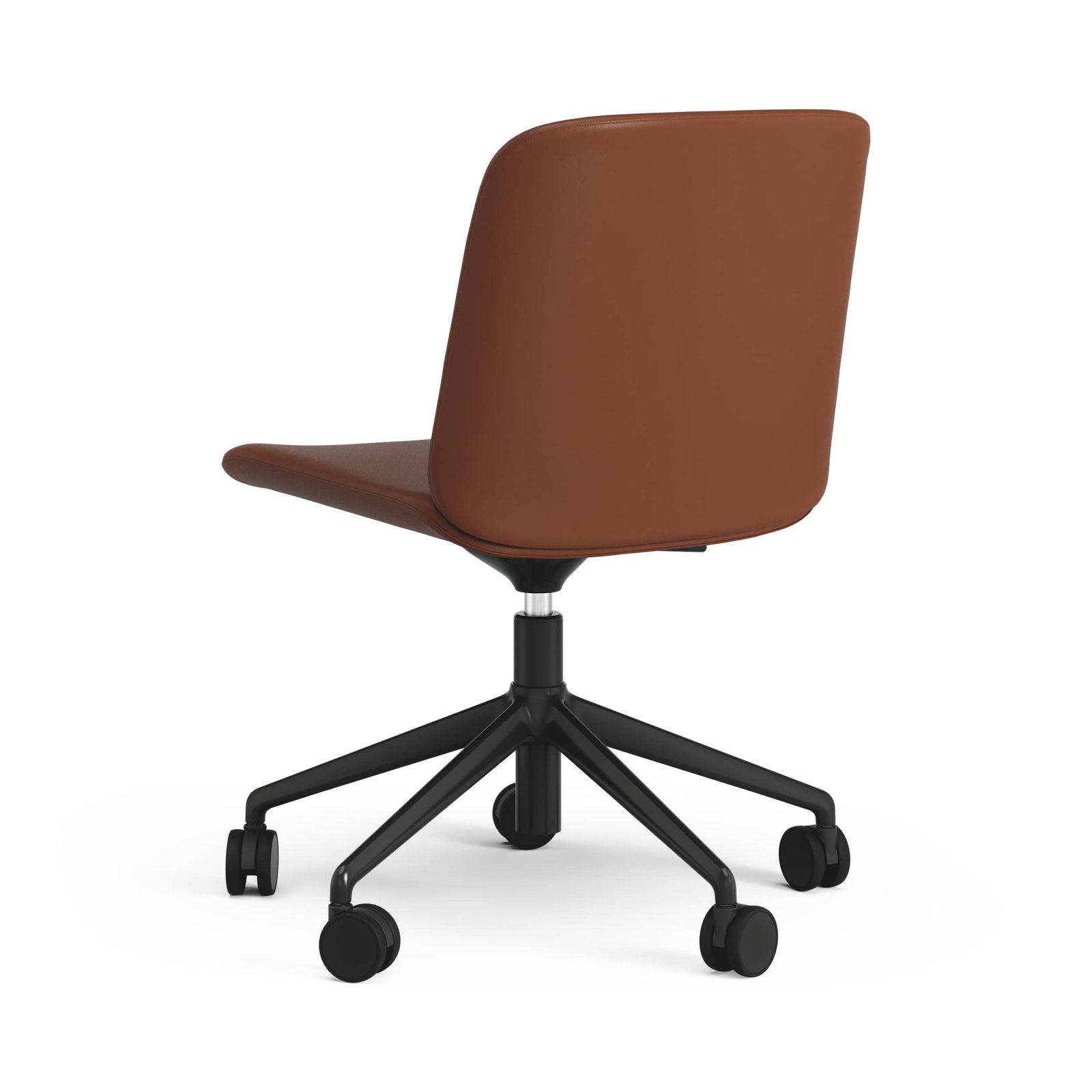 Stol med hjulstativ i svartlackerad aluminium. Höj och sänkbar med tiltfunktion.