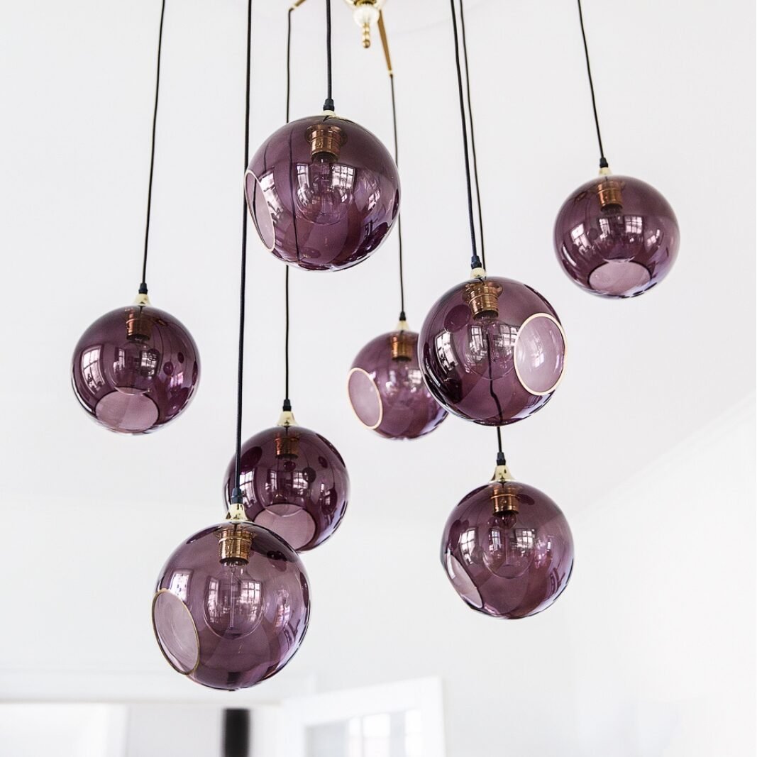 The Ballroom pendant is simple and excellent. The classic shape combined with the gold plated or black suspension makes this lamp timeless. The glass dome is mouth blown and hand painted. The edge of the faceted hole is either gold or silver.