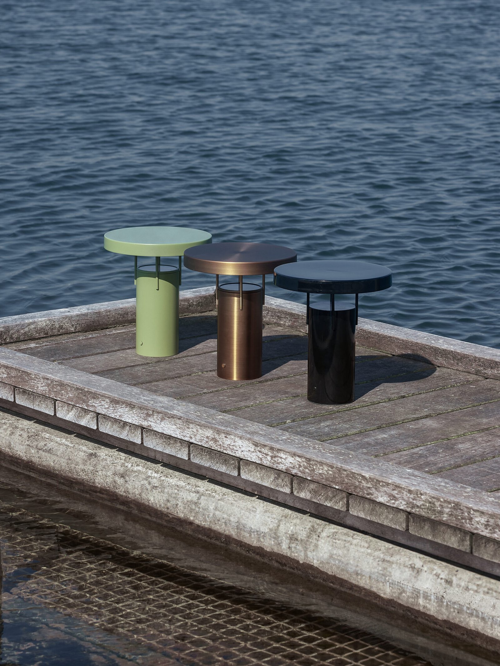 Genopladelig bordlampe til indendørs og udendørs brug med tænd-sluk og lysdæmpende touch-funktion. Farven er sort blank pulverlakeret metal.