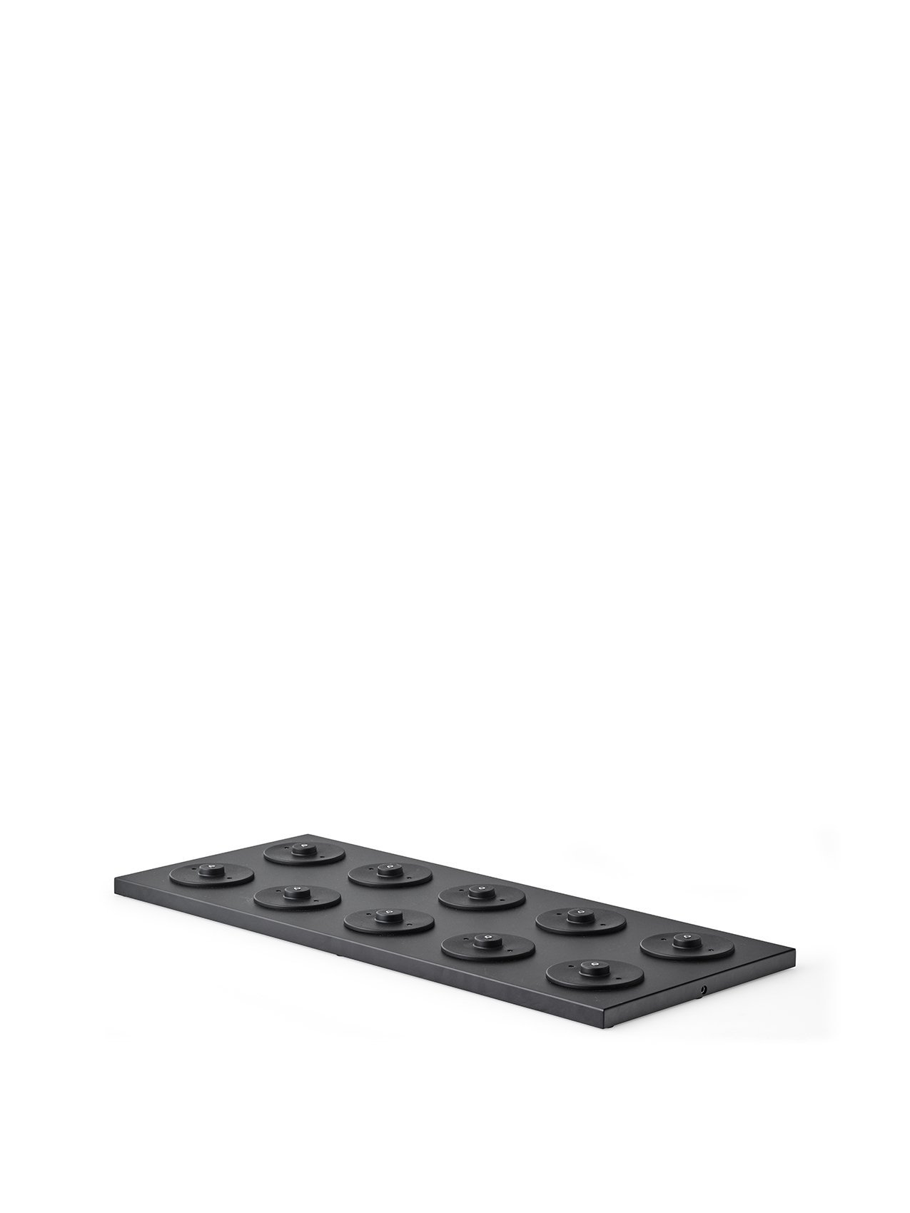 The charging board is made from a laser-cut steel sheet, which is then bent into shape and powder coated for a durable finish. It features 10 integrated magnetic power plugs