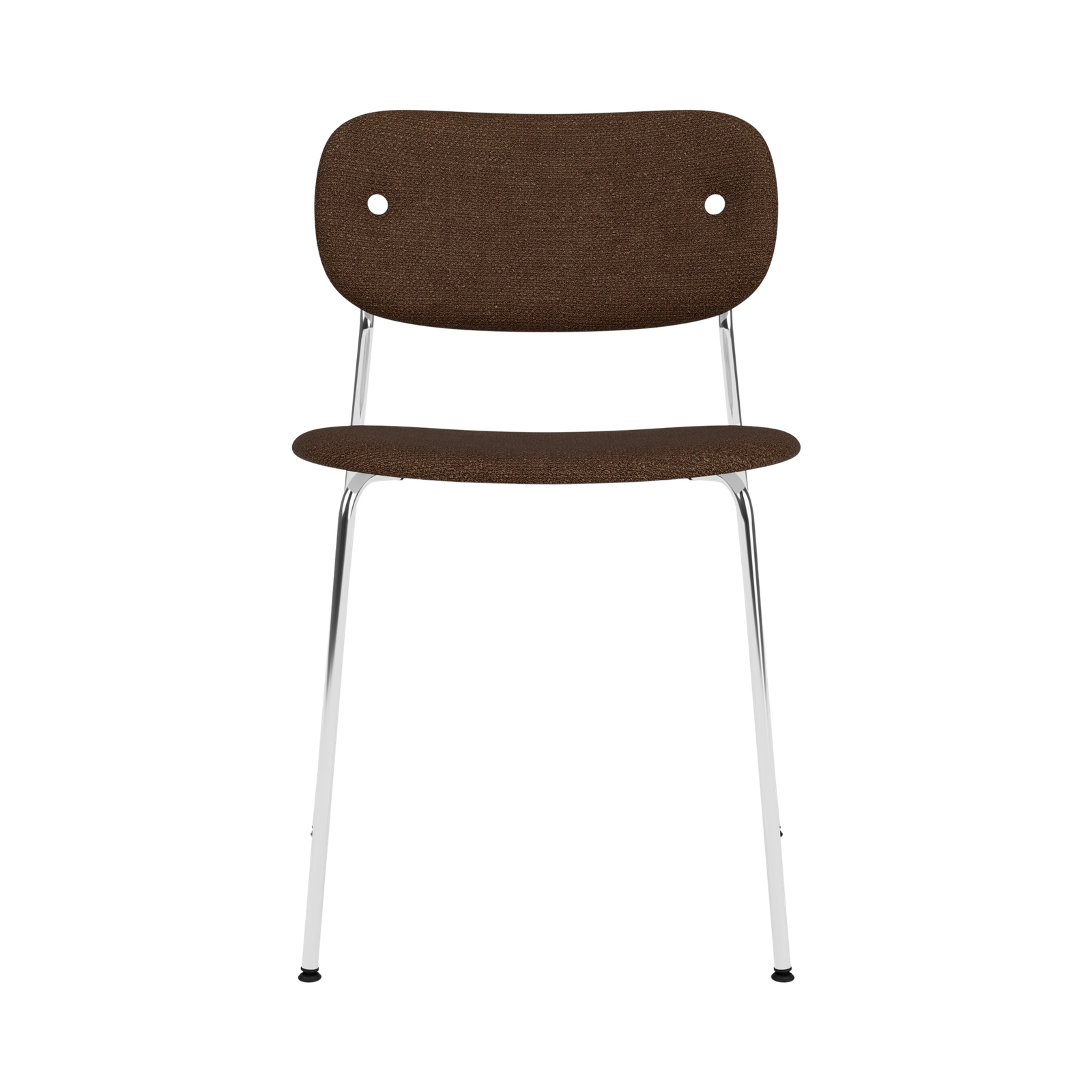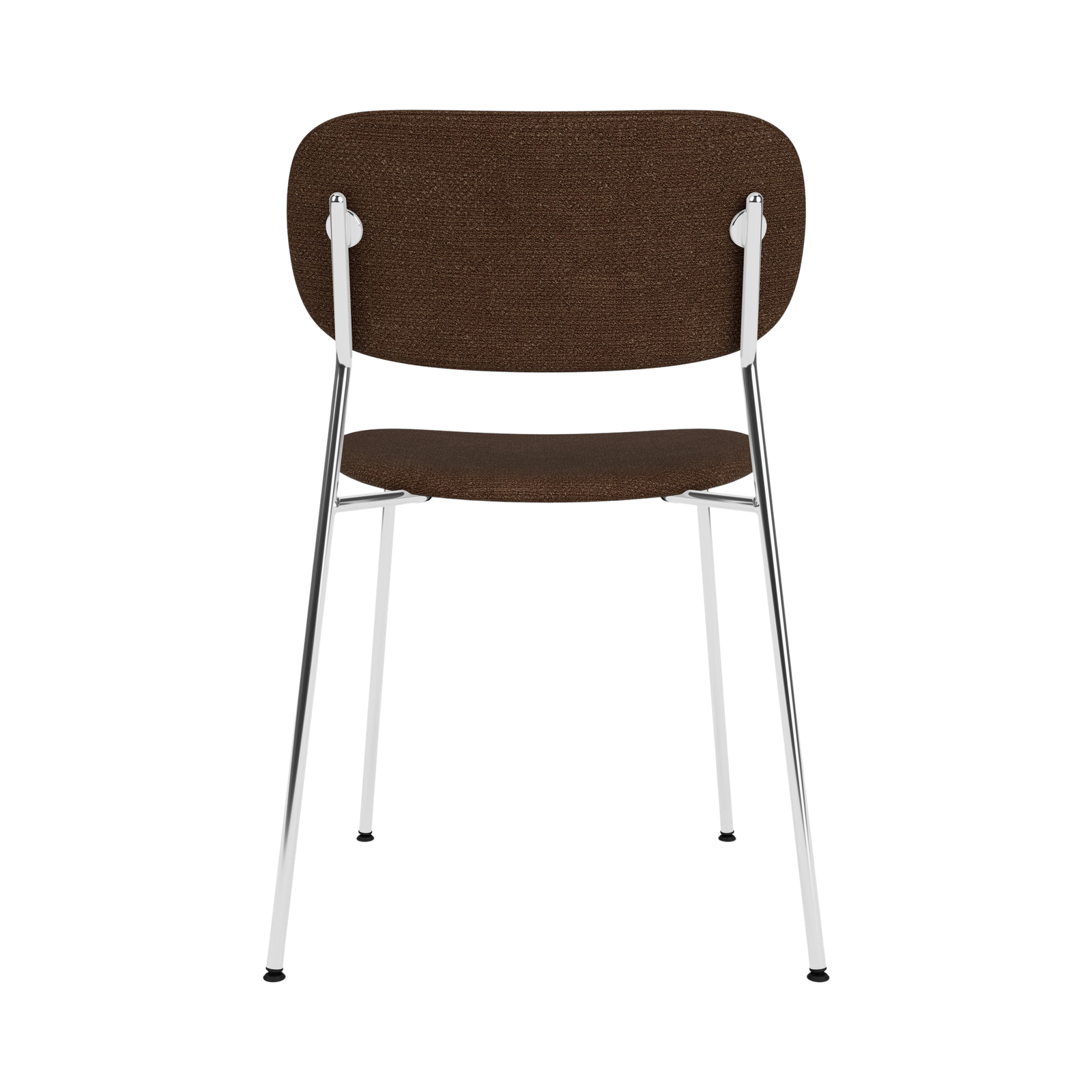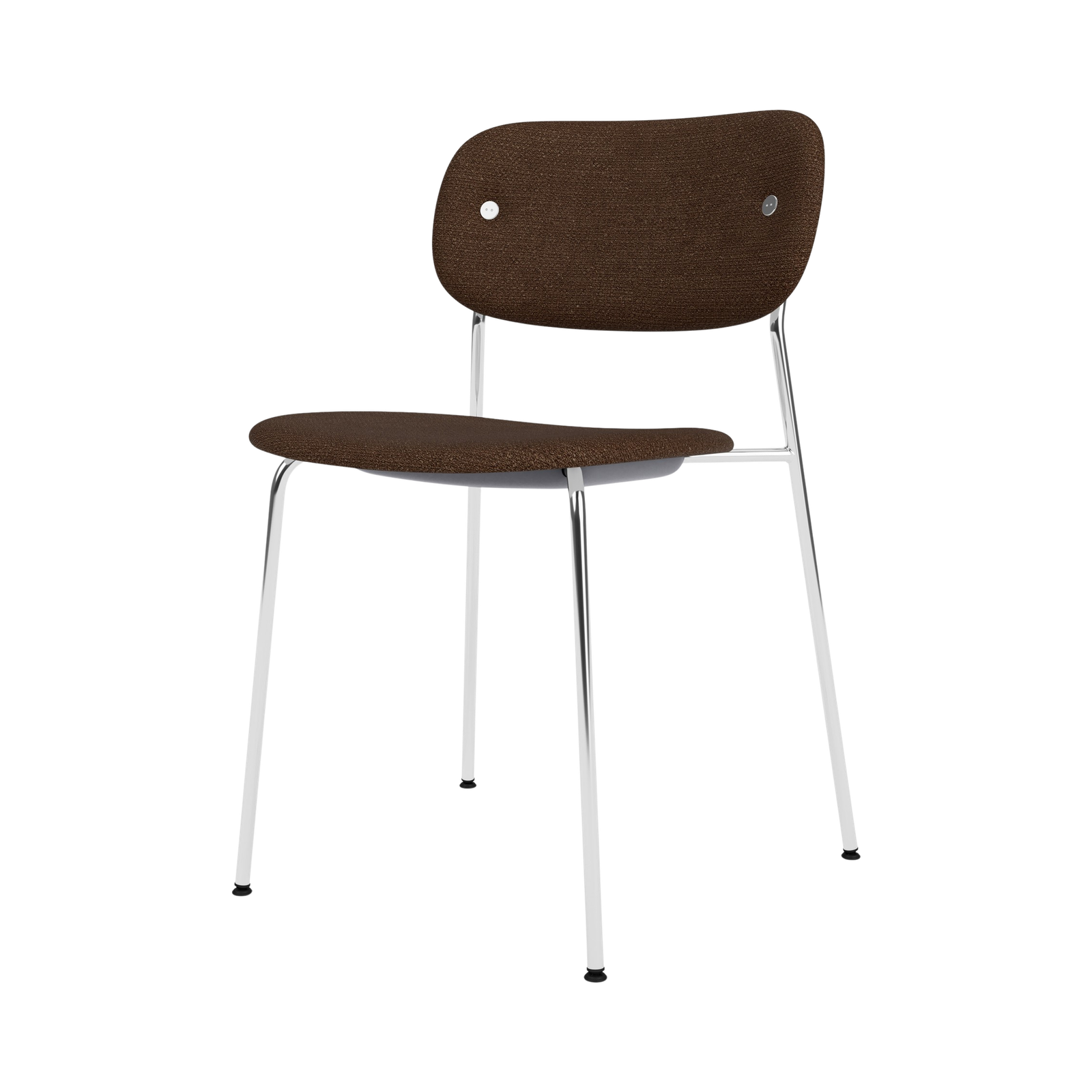 The seat, backrest, and armrests are made from curved plywood, with the shell CNC-milled on a 5-axis machine. The core is beech veneer, finished with an outer layer of oak veneer. Upholstered options are available, including full wood, seat upholstery, and fully upholstered versions, with double-layer foam used on the seat for added comfort. The base is made from bent, welded steel tubes, with armrests crafted from steel rods. The base comes in either a powder-coated or chrome finish.