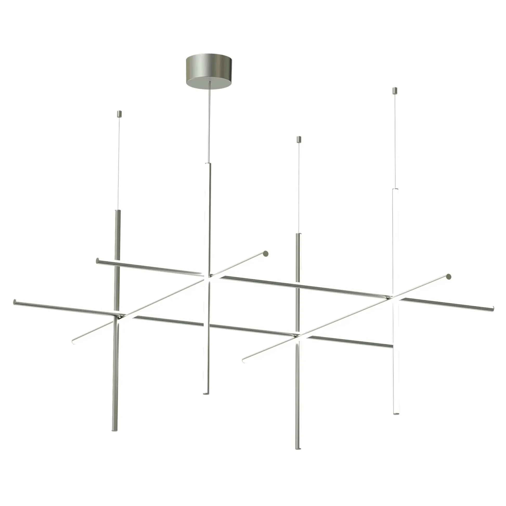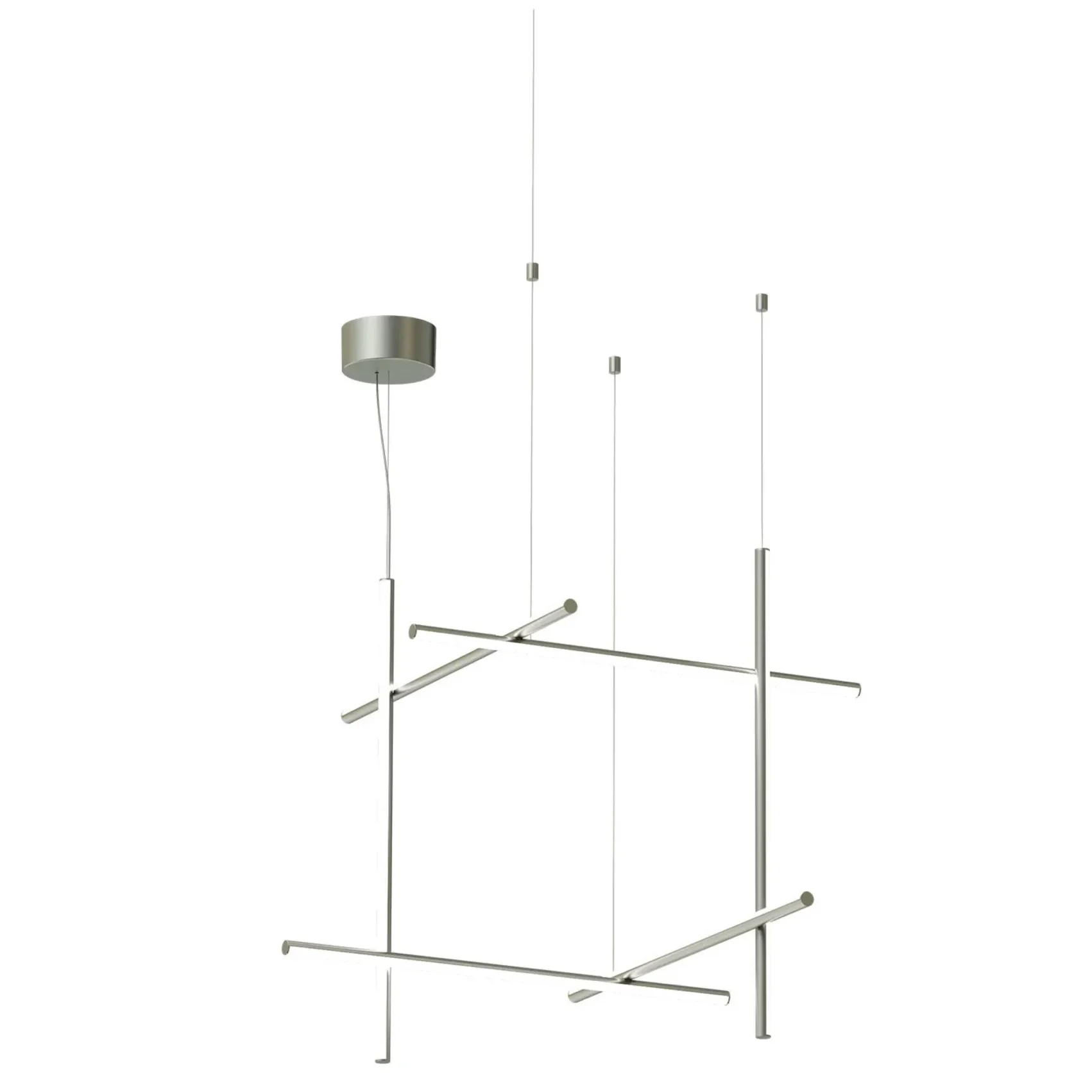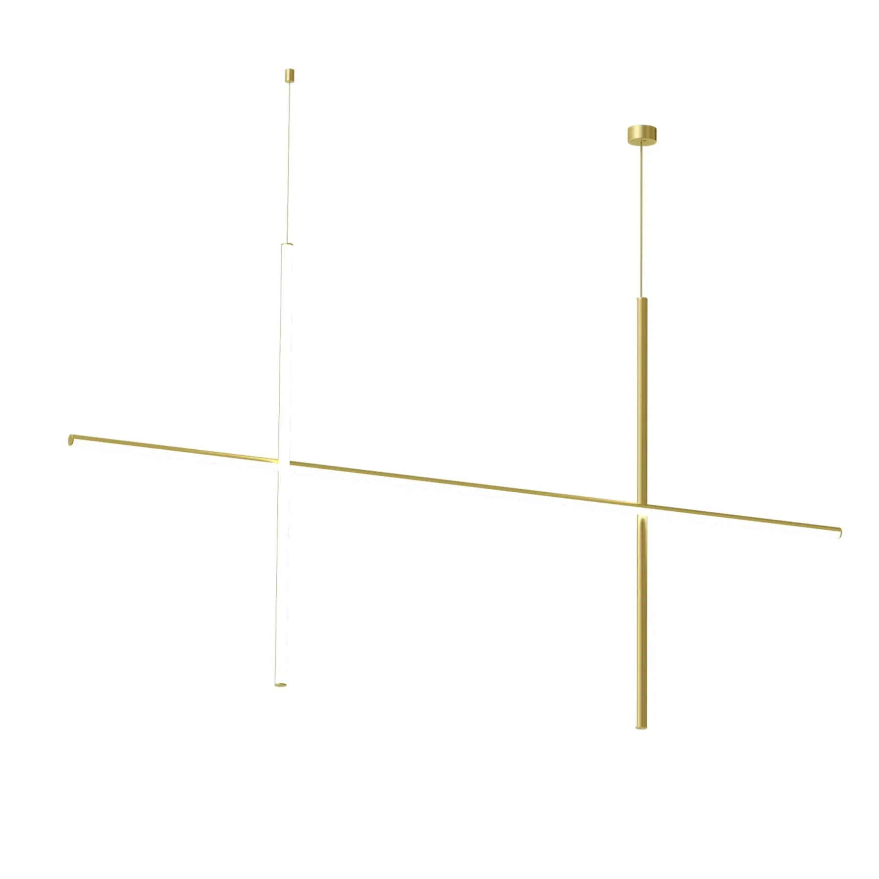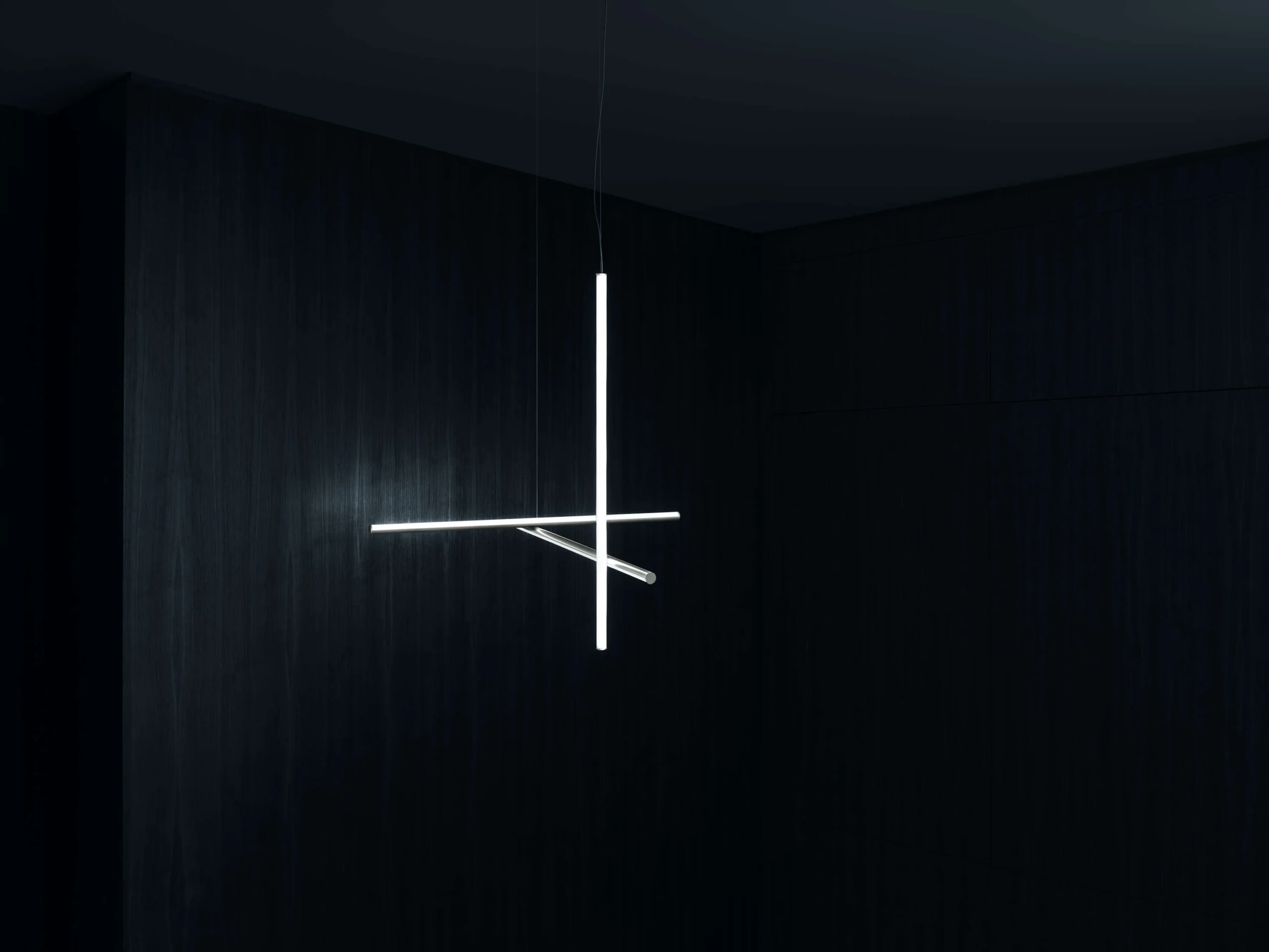 Coordinates is a lighting system with diffuse light composed of horizontal and vertical luminaries arranged in a bright grid of various shapes and complexities. Each element is made of extruded anodized aluminium with a champagne finish and a diffuser in platinum optical silicone with an integrated LED strip (CRI 95). Each element is powered and supported by an invisible electrical and mechanical connection designed specifically to allow for the composition of the 4 hanging models (S1, S2, S3, S4) with 2.4-m cables. The S Module is also available. Its geometry was designed to be repeated to create large grids for custom installations. Each Coordinates configuration includes its own ceiling rose, whose integrated electronics allow for the use of different dimmer systems: push, 1-10, DALI. In the absence of these systems, the amount of light can be set during installation with the push system included in the rose. The related Cl III version is also available for each configuration for installations with a remote power supply.