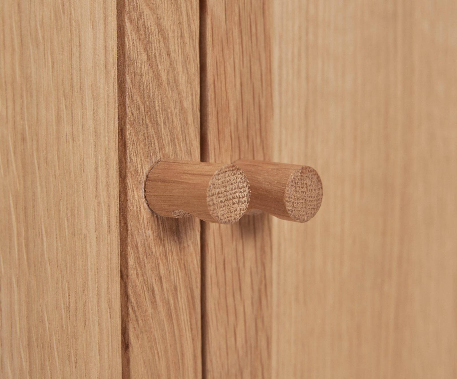 Fritstående konsolbord med to låger skabt af FSC®-certificeret egetræ og egetræsfiner.