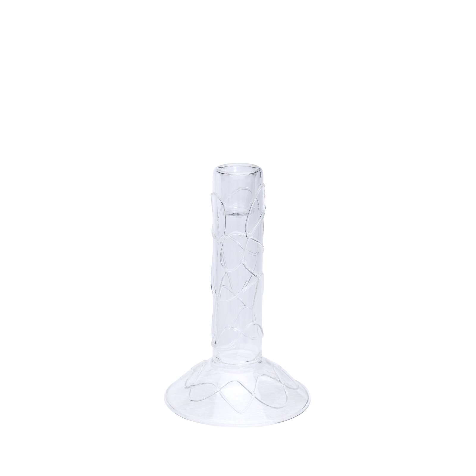 Som en tegning, der bliver levende i glas. Doodle Lysestagen i klart glas forvandler skarpe kanter til bløde former med sit legende, flydende design. Den er en af fire unikke varianter og tilfører varme og whimsy til dine aftener, hvor den lyser op med hvert flimrende skær. Dens teksturerede overflade fanger flammen og spreder den blidt, hvilket bringer bevægelse og charme ind i rummet. Et muntert stykke, der gør stearinlysets skær til en stille fejring.