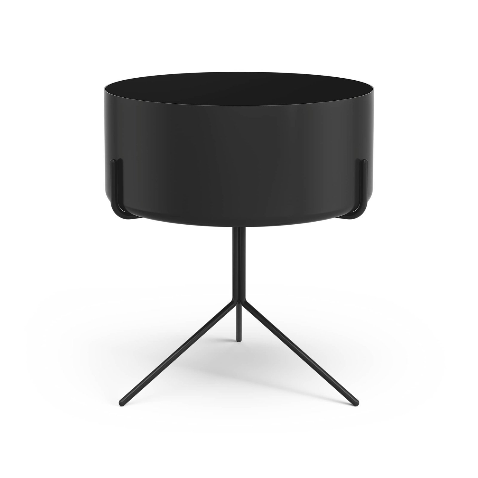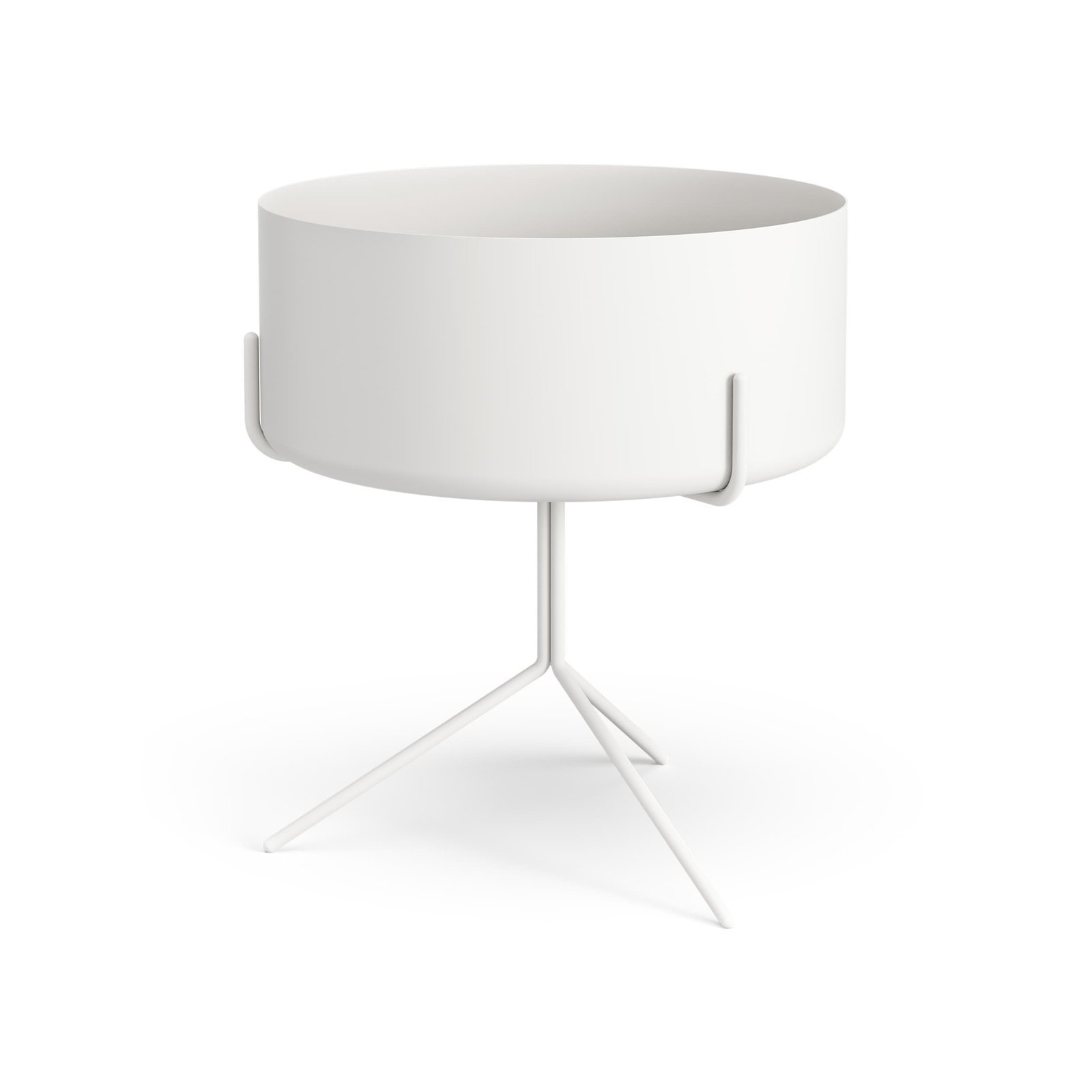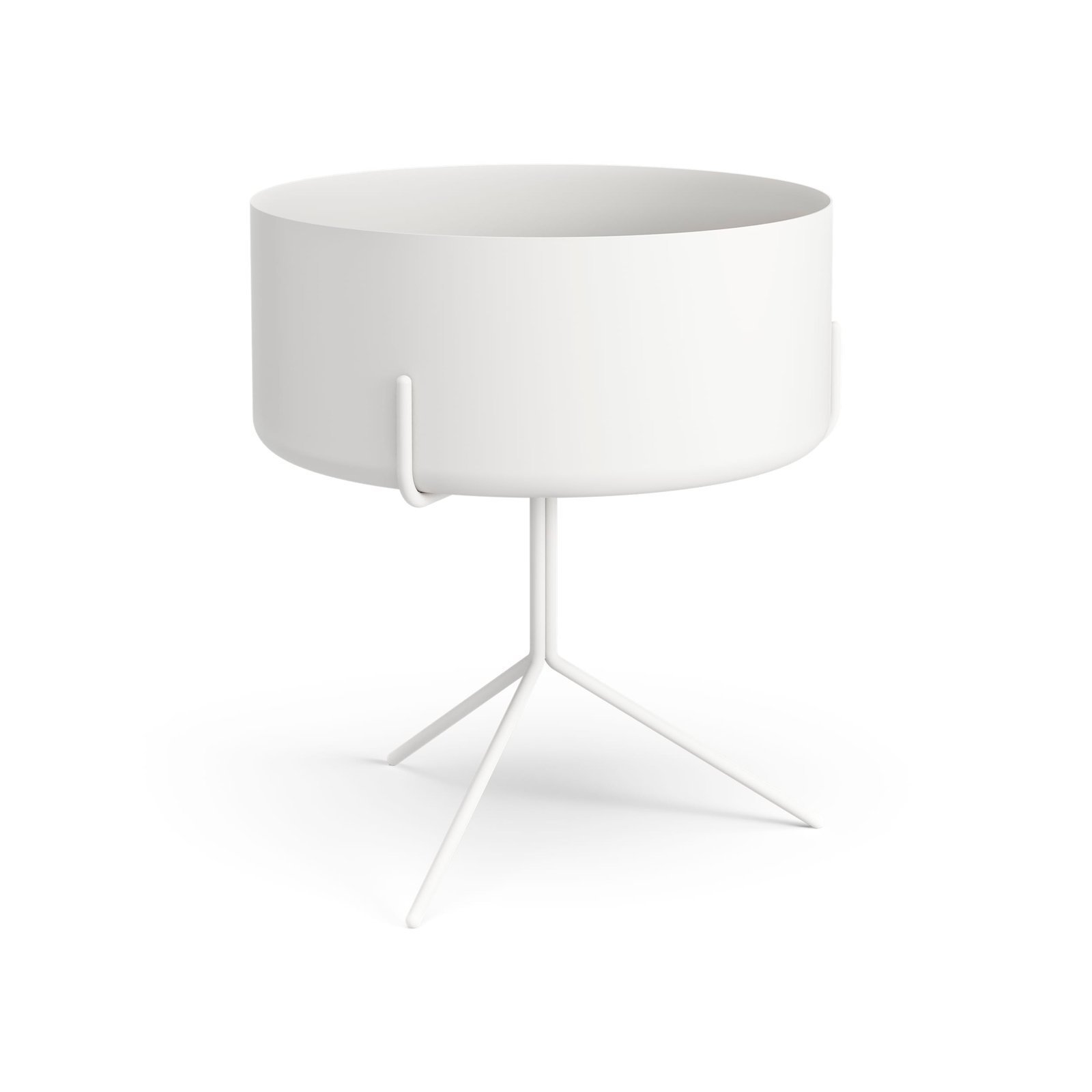 Drum runt bord med metallskål diameter 40 cm höjd 36 cm