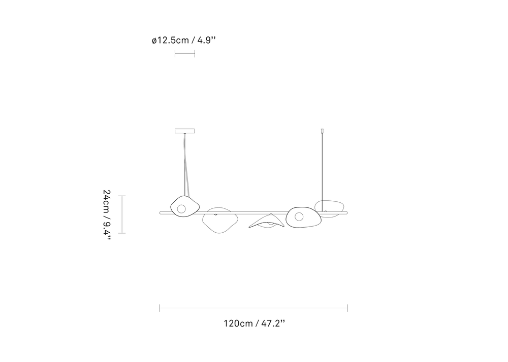 Florii 5 Linear is an elegant centrepiece that redefines the modern chandelier and is ideal in rooms where an oblong suspension lamp is desired. The integrated LED technology delivers efficient and long-lasting illumination that can be easily replaced without the need for tools. The dark bronze linear rod creates contrast and depth to the translucent white shades in polycarbonate that emerge with natural grace, creating a captivating expression that draws the eyes towards their soft organic shapes. Place Florii 5 Linear above the dining table or a kitchen island from where it will cast a warm and inviting light over shared meals.