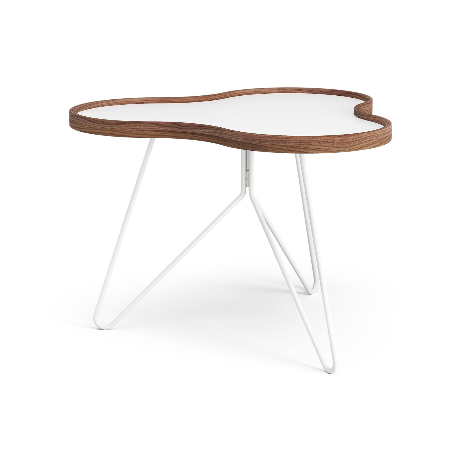 Flower bord 66 x 62 cm. Bordskiva i vit laminat. Sarg i naturlackad valnöt. Stålstativ i vitt. Höjd 45 cm.