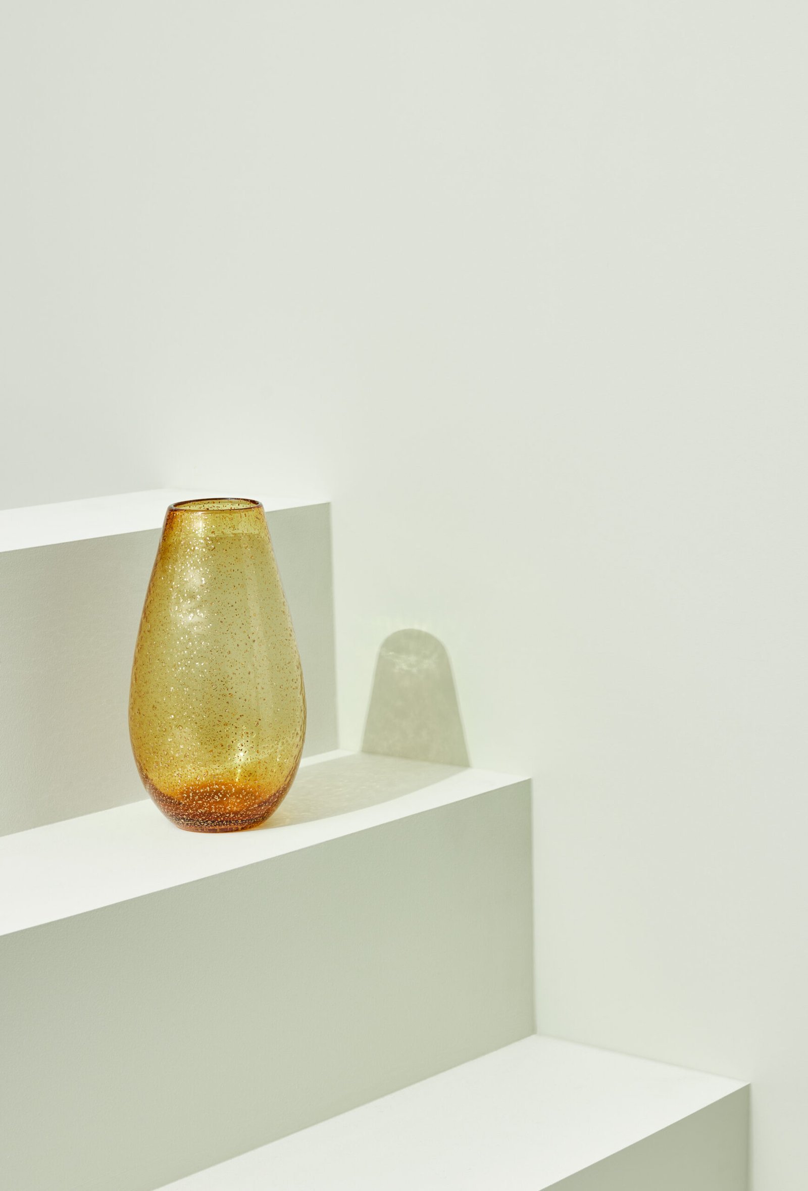 Håndlevet vase i glas med ravfarve.