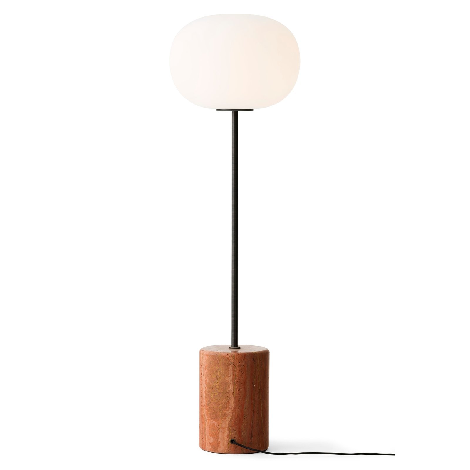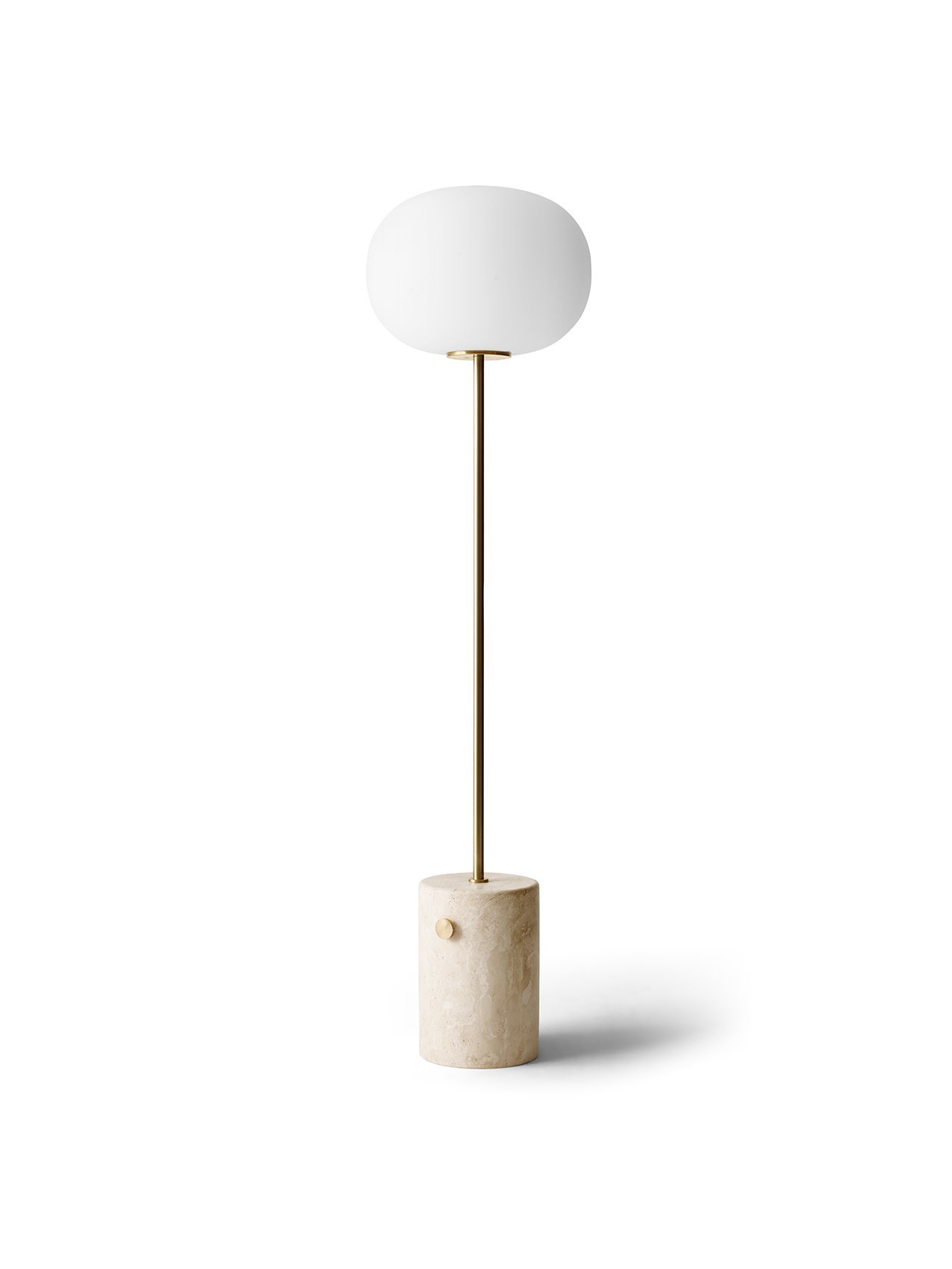 Mouth-blown glass shade and machine-cut base with hand-polished finish. Details in cut solid brass.