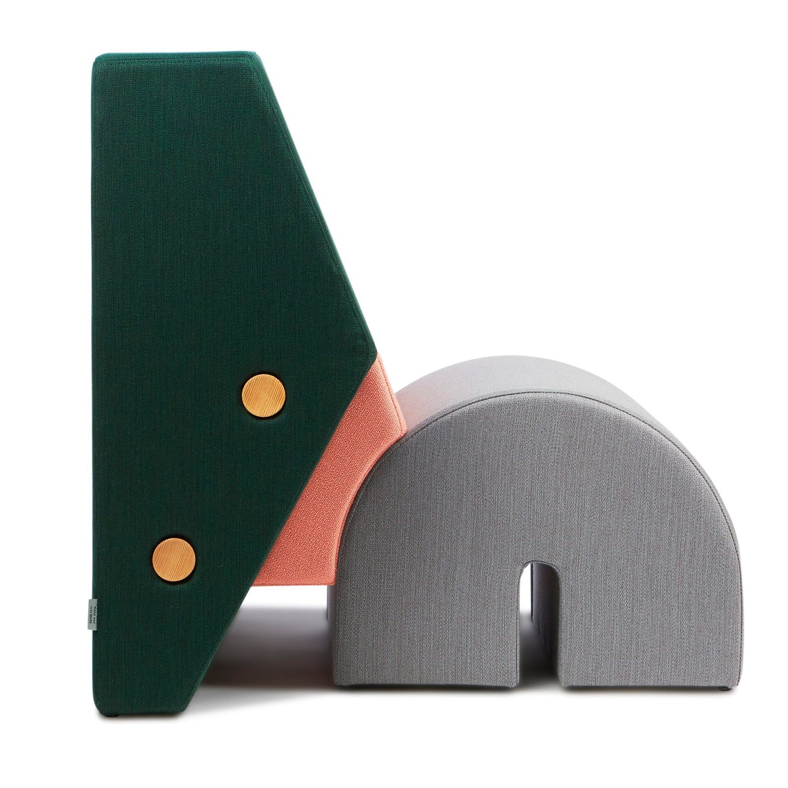 KEYSTONE lounge chair is inspired by the three fundamental elements of a Roman bridge: the arching spans, the supporting building blocks, and the keystone—the crucial final piece that locks the structure in place and completes its form. Originally, KEYSTONE was created as a 450-kilo sculpture in concrete, rubber, and Ceramics. In collaboration with the designer duo OS & OOS, the idea emerged to transform this artwork into a functional lounge chair. The chair is composed of three distinct, yet harmoniously connected elements: a solid backrest, a gently curved seat, and a wedge-shaped central section. These components work together to create a comfortable seating experience while inviting both relaxation and interaction. Its sturdy construction and playful character also make it a kid-friendly piece. This version of the KEYSTONE lounge chair is upholstered with premium textiles from Kvadrat and is available in a wide range of colour combinations, allowing for seamless integration into any interior. A visually striking and highly functional piece, it brings character and vibrancy to both private and public spaces.