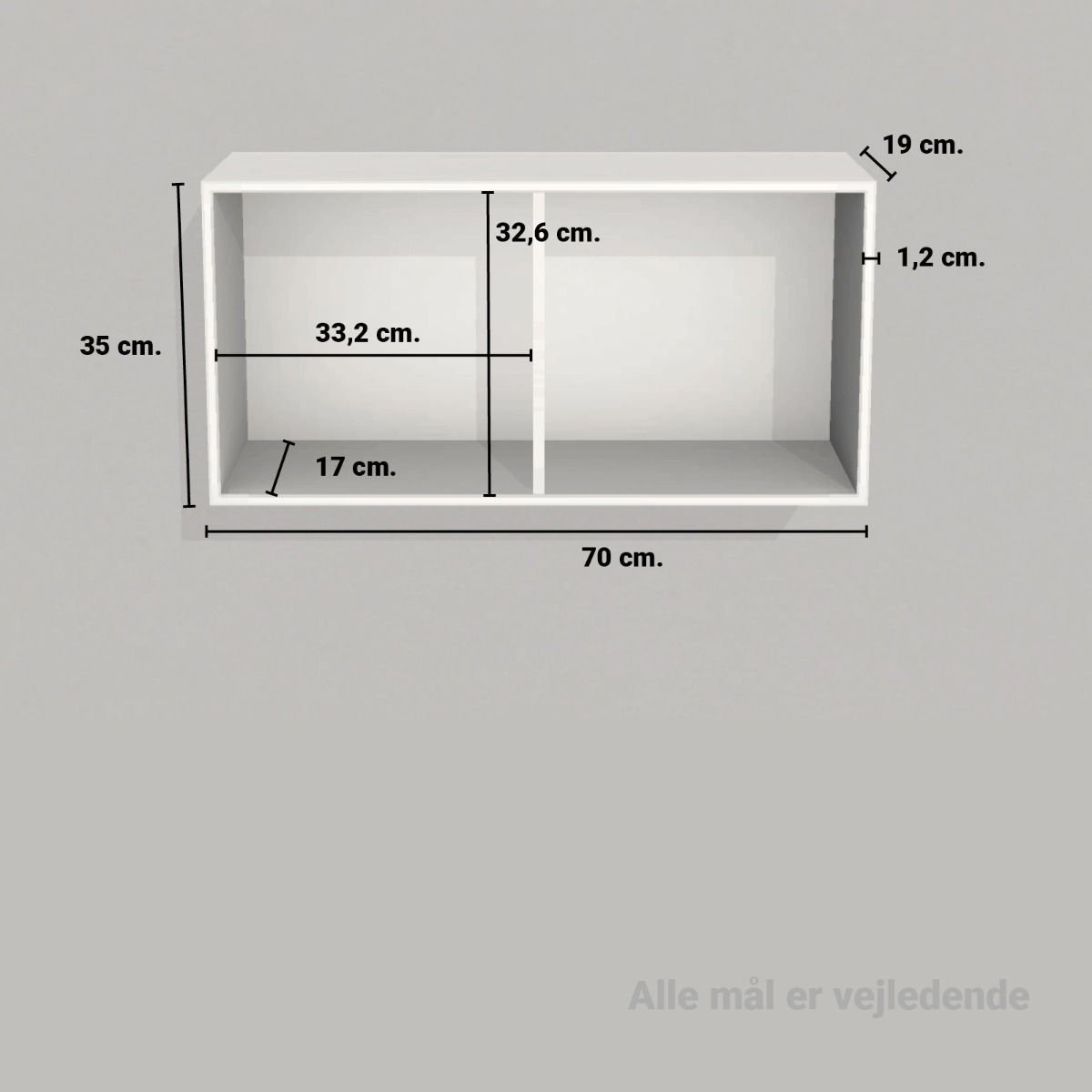 HUSK at bestille sokkel/ben/ophæng til din KUBIK reol separat. Denne reolkasse er 70x35 cm. med 3 rum og fås i 19, 32 og 40 cm dyb. Reolkasserne er malet på MDF. Vælg mellem de 11 farver og og 3 dybder, ved at krydse af i felterne. Der kan altid købes ekstra tilbehør, såsom hylder, låger og skuffer. Reolen kan enten stå på sokkel eller ben eller hænge på væggen med et ophæng. Der er i alle reoler forboret huller (3 mm) til montering af hylder.