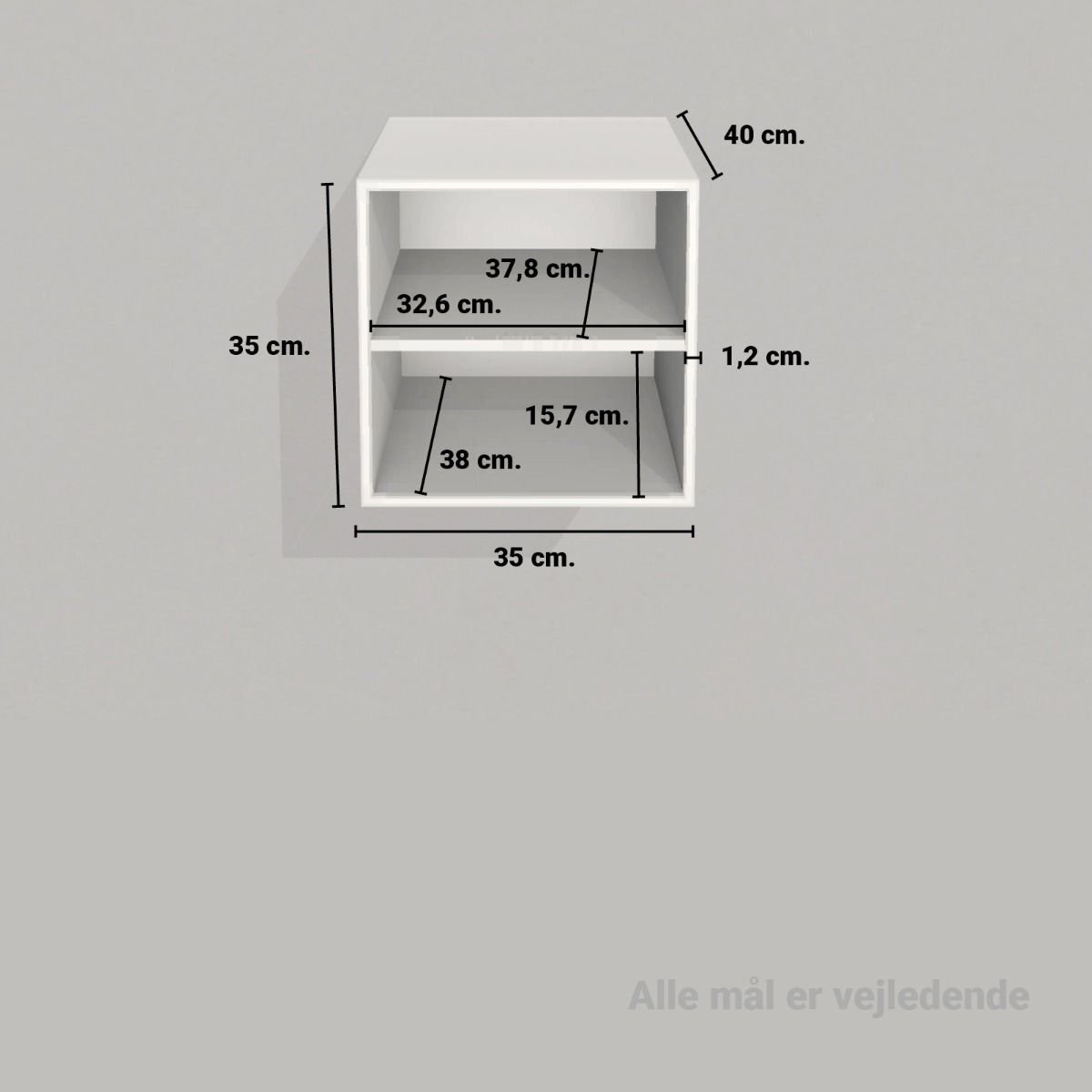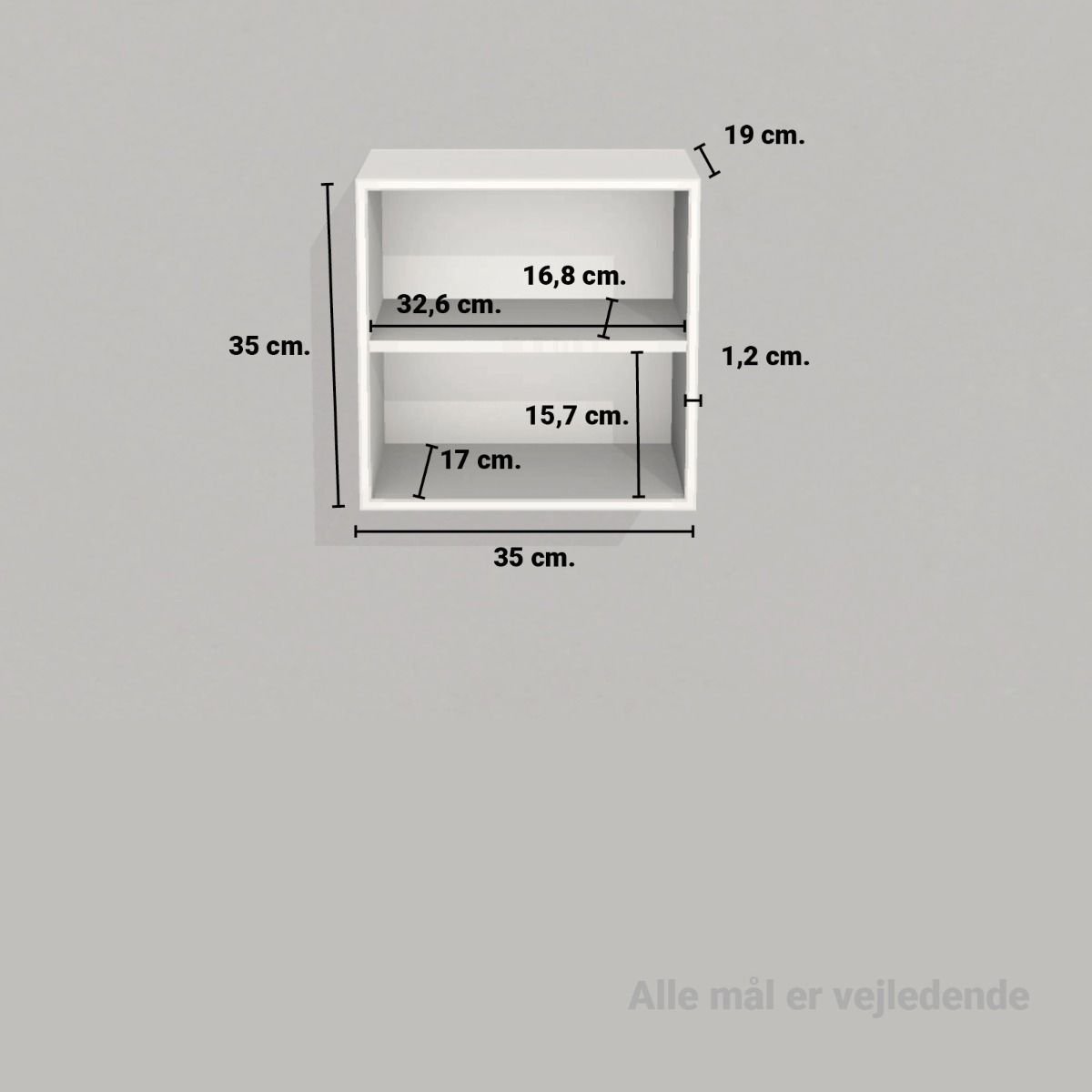 HUSK at bestille sokkel/ben/ophæng til din KUBIK reol separat. Denne reolkasse er 35x35 cm. med 2 rum og fås i 19, 32 og 40 cm dyb. Reolkasserne er malet på MDF. Vælg mellem de 11 farver og og 3 dybder, ved at krydse af i felterne. Der kan altid købes ekstra tilbehør, såsom hylder, låger og skuffer. Reolen kan enten stå på sokkel eller ben eller hænge på væggen med et ophæng. Der er i alle reoler forboret huller (3 mm) til montering af hylder.