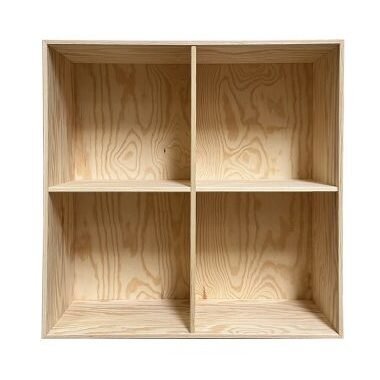 Denne reolkasse med 4 rum er 70x70 cm og fås i 19, 32 og 40 cm dyb. Reolerne kommer ubehandlet. Vælg mellem 4 træsorter og 3 dybder. Der kan altid købes ekstra tilbehør, såsom hylder og låger. Reolen kan enten stå på sokkel eller ben, eller hænge på væggen med et ophæng (bestilles separat her).