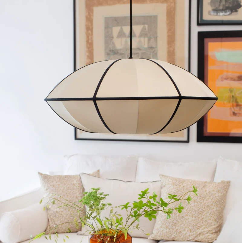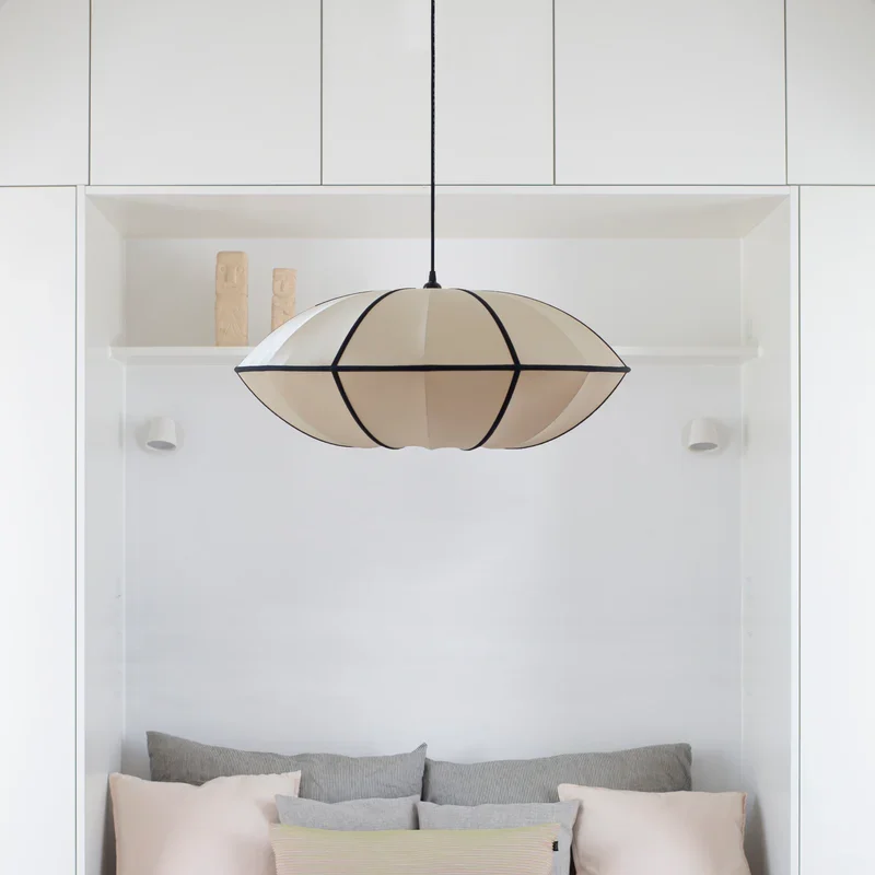 Loftslampeskærm i 100% råsilke med bomuldsbånd.