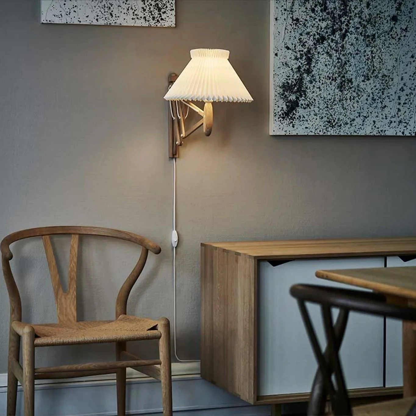 Den klassiske Saxlampe, designet af Erik Hansen i 1952, er et ikonisk valg inden for dansk design. Denne elegante væglampe kombinerer tidløst design med naturlige materialer og tilbydes i flere træsorter, herunder lys og røget eg.