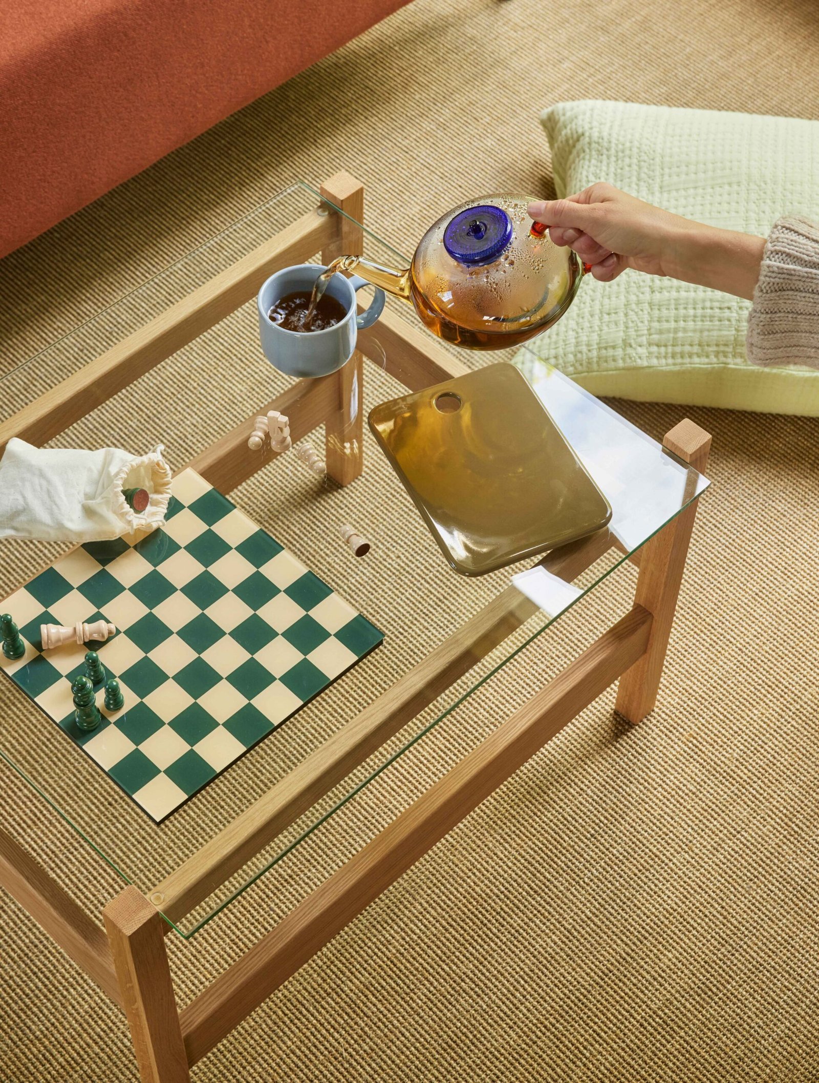 Ledge Sidebordet repræsenterer en perfekt fusion af funktion og stil, ideelt til placering ved siden af din foretrukne lænestol. Bordet er ikke blot praktisk, men det udstråler også elegance ved kombinationen af den naturlige eg og den sofistikerede klare glasplade. Den geometriske linjekonstruktion af bordets robuste base er fremstillet af FSC-certificeret træ. Glaspladen tilføjer en følelse af lethed og luftighed og fremhæver samtidig det smukke træværk under.