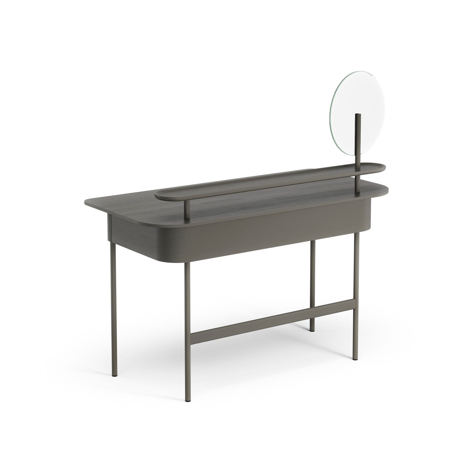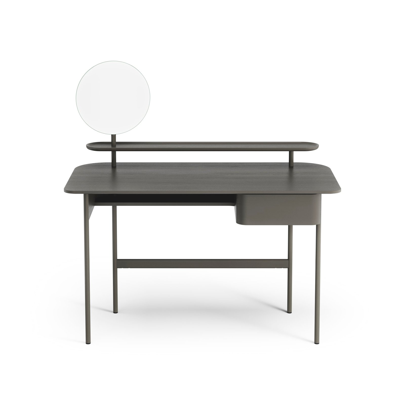 Skrivbord med låda, hylla och spegel, ek orkangrå
