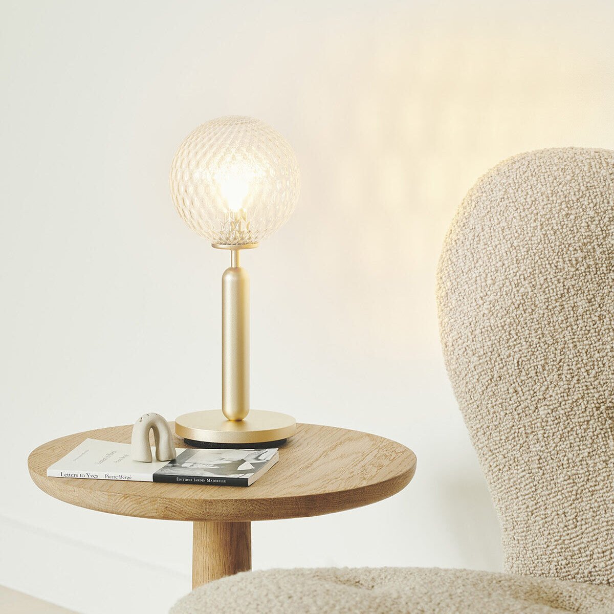 Classic elegant table lamp in rock grey metal finish and mouth-blown clear glass. The patterned glass globe creates a radiant light, and the clean design of the Miira Table lamp flatter all kinds of decór styles. Cable with on/off switch.