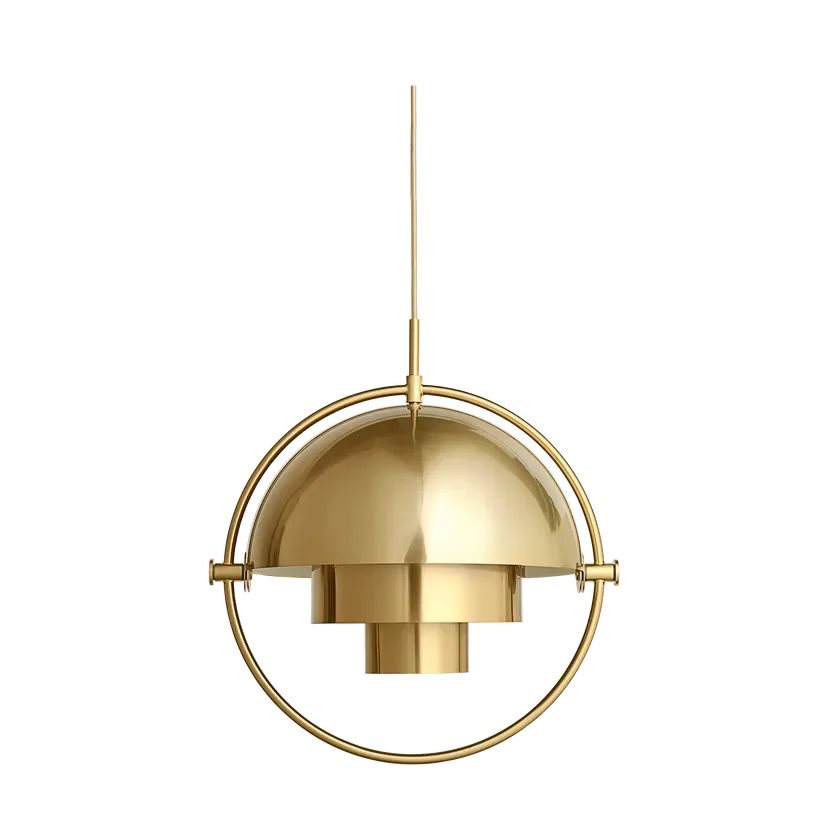 The Multi-Lite Pendant embraces the golden era of Danish design with its characteristic shape of two opposing outside, mobile shades that enable creating a personal installation and a wide range of lighting values in a room. By individually rotating the shades, the Multi-Lite Pendant can be transformed into multiple combinations where the light can be directed upwards, downwards or exude an asymmetrical art light. The Multi-Lite was first drawn in 1972 when Louis Weisdorf did an exception to his own design custom of using multiple repeating elements. Instead, it reflects his passion for diversity. Two cylindrical shapes lay the foundation of the lamp and a metal ring encompasses it and anchors the two quarter-spherical shades, which ultimately completes a picture of an iconic design with multiple purposes. The Multi-Lite Pendant has a timeless expression that fits into any domestic setting.