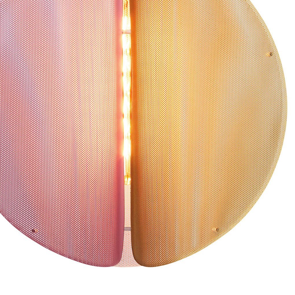 The PROXIMA pendant draws inspiration from the distant glow of Proxima Centauri, Earth’s nearest neighbouring star. Its intricate design features hundreds of small perforations that gently diffuse light in every direction, casting a soft, atmospheric glow. Perfect for setting the mood on a cosy evening or adding a touch of intrigue to any space, its warm radiance creates a calming, all-encompassing ambiance. Crafted from lightweight, flat-bent steel with a brass-coated finish, the 46 cm pendant is delivered in a flat pack for easy assembly. Available in two striking variations: a classic brass version and a bold three-colour design in Indian Red, Ash Grey, and Brass.