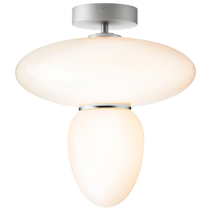 Rizzatto 42 ceiling lamp is mounted directly on the ceiling, making it possible to create unique, decorative ceiling lighting. The ceiling light fixture is created with organic, geometric shades in opal glass and features details in satin brass metal finish. Rizzatto 42 gives a soft and even light, making it ideal in the bedroom, the kitchen or the hallway.