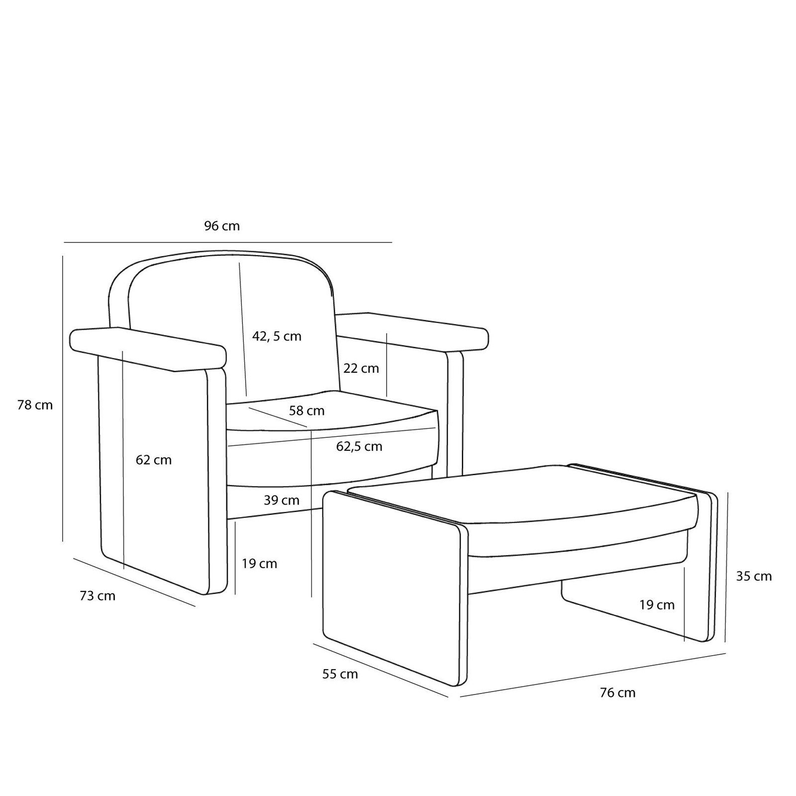 - Størrelse: 96x73xh78cm, 76x55xh35cm