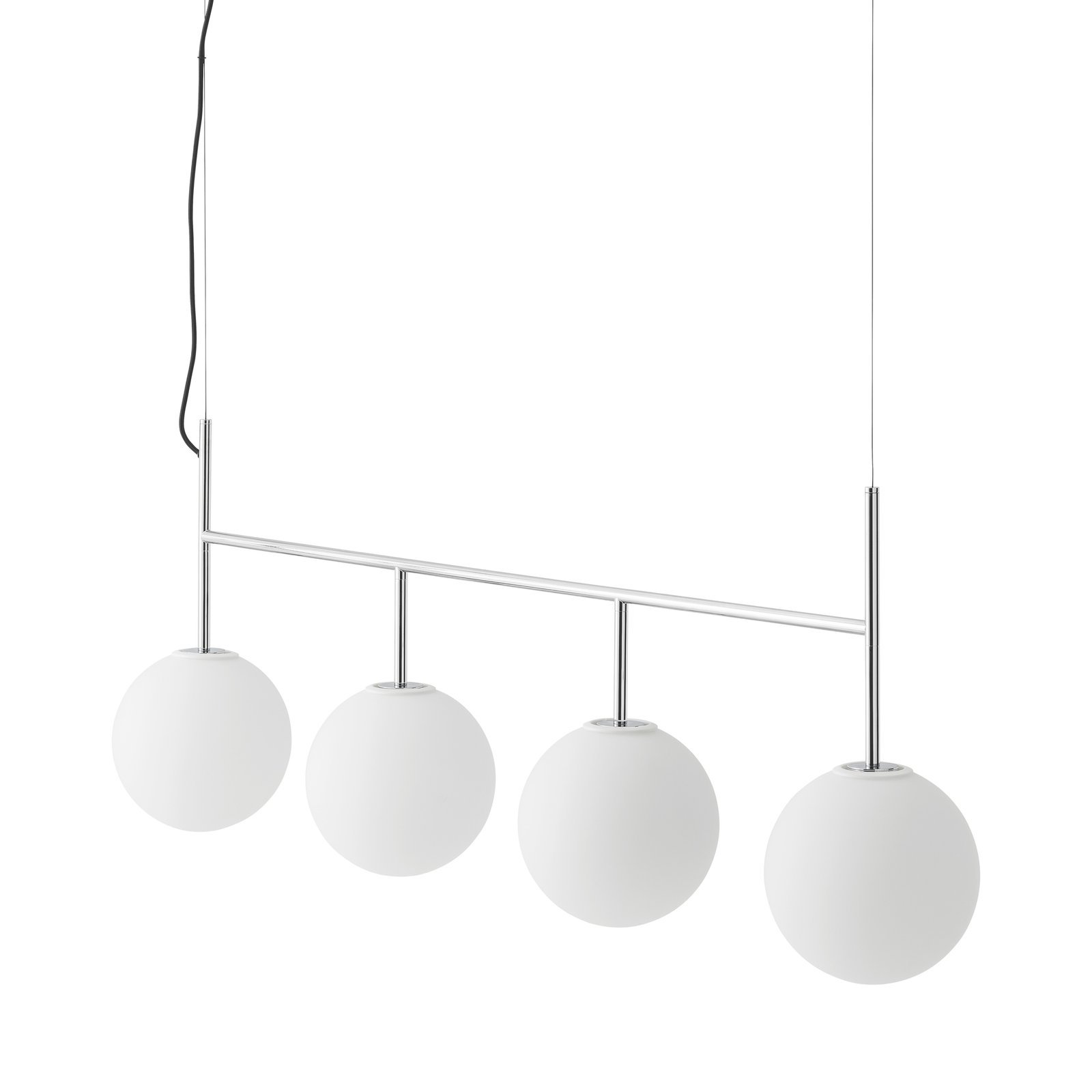 The globe shade is made from mouthblown opal glass and the core is designed with aluminium to draw heat away from the LED light source, allowing the bulb to run at the optimum temperature. Accessory fittings are made of brushed brass or painted steel.